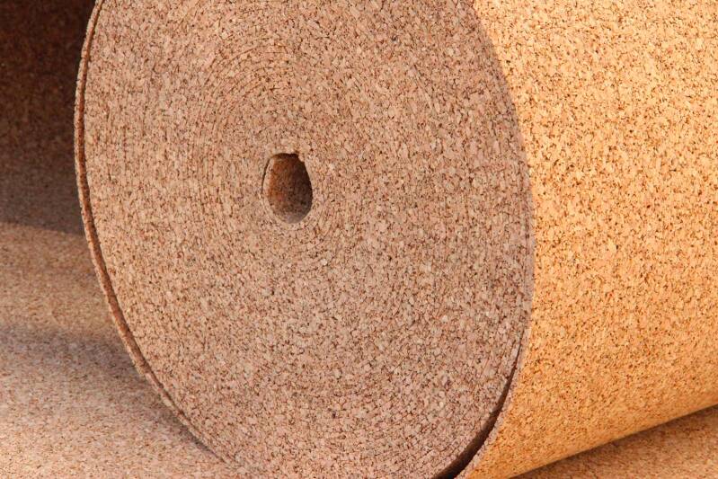 Rouleau de liège : Un rouleau de liège est fabriqué à partir de liège, un matériau naturel obtenu à partir de l'écorce du chêne-liège. Il est léger, flexible et possède de bonnes propriétés isolantes, tant thermiques qu'acoustiques. Il est largement utilisé comme support pour moquettes et revêtements de sol, ainsi que pour l'isolation thermique et acoustique des bâtiments.